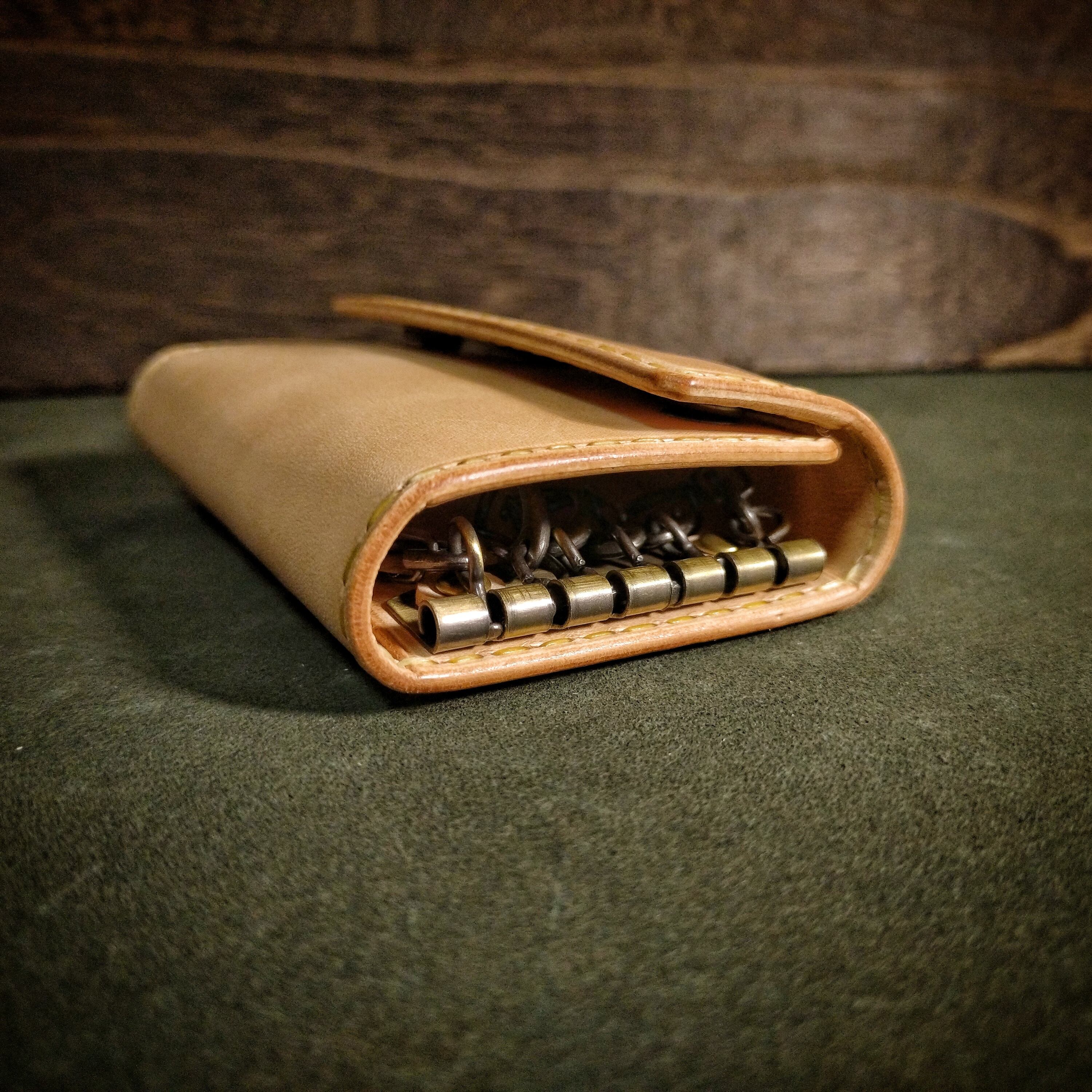 素材:国産本革(姫路レザー)、6連キー金具、ホック(アンティーク)、シニュー糸